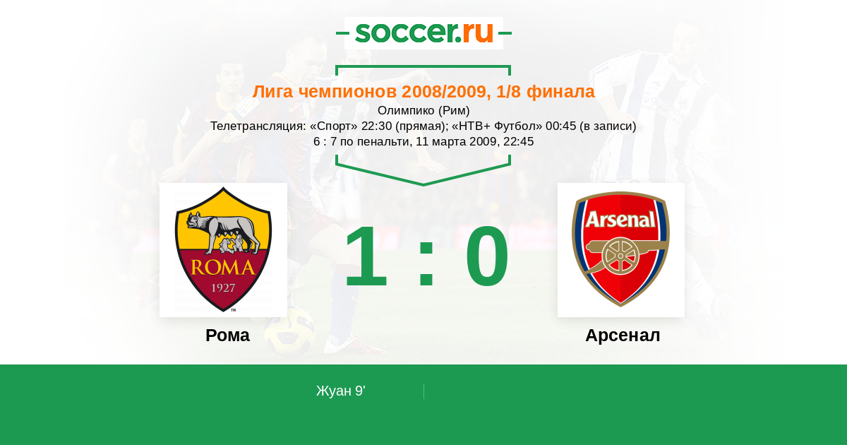 9' (1:0) Жуан (Тотти Франческо)