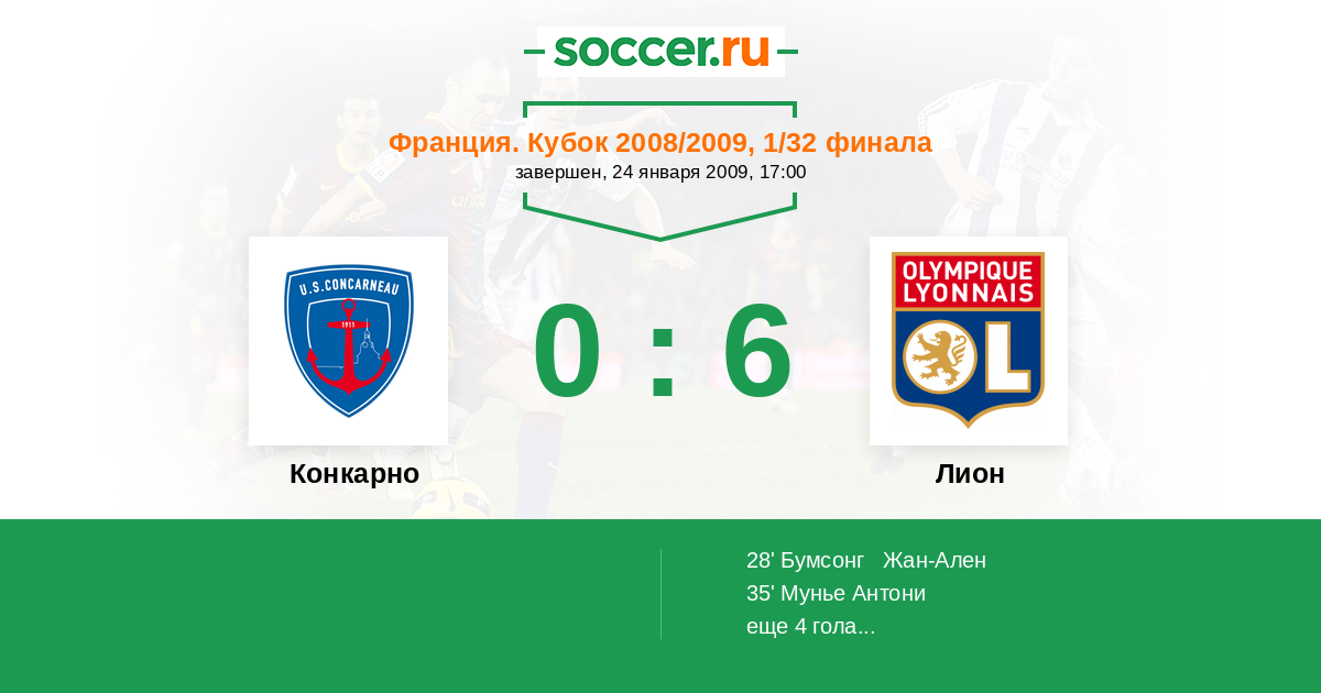 Протокол матча Конкарно против Лион