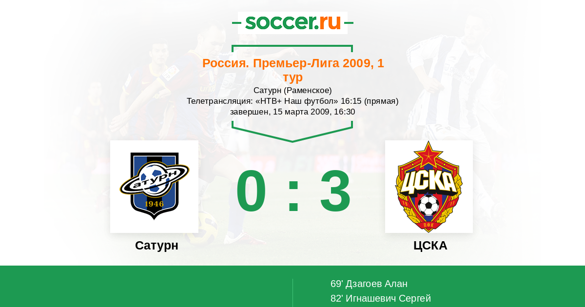 Протокол матча Сатурн против ЦСКА