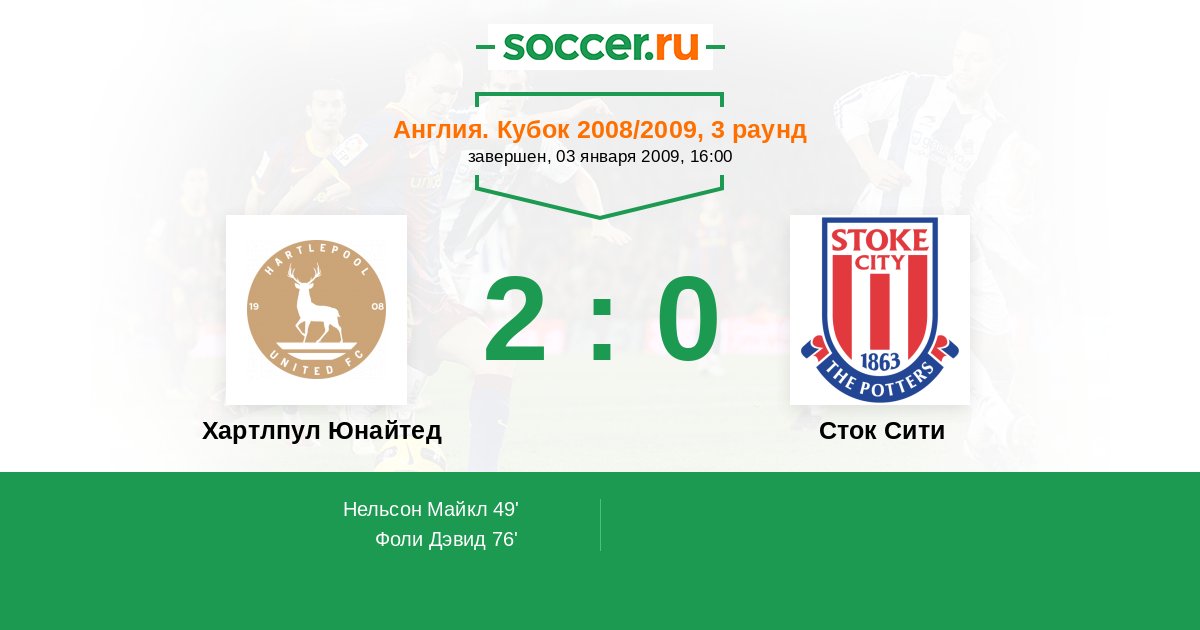 Протокол матча Хартлпул Юнайтед против Сток Сити
