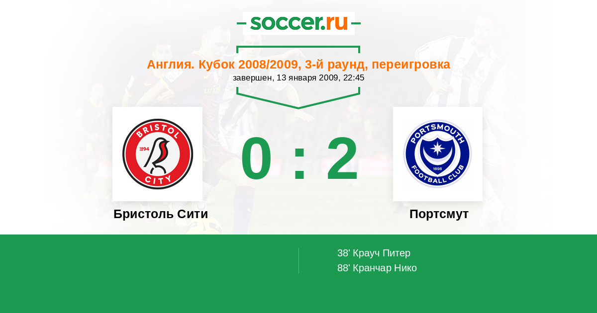 Протокол матча Бристоль Сити против Портсмут