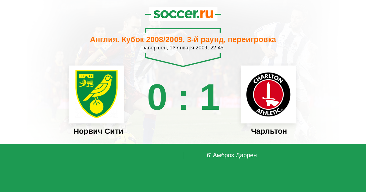 Протокол матча Норвич Сити против Чарльтон