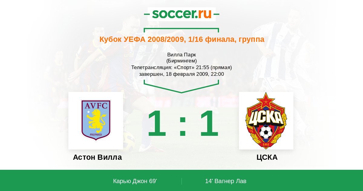 Протокол матча Астон Вилла против ЦСКА