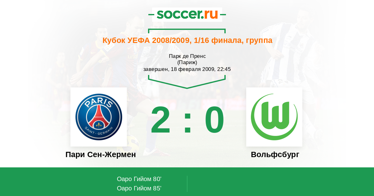 Протокол матча Пари Сен-Жермен против Вольфсбург