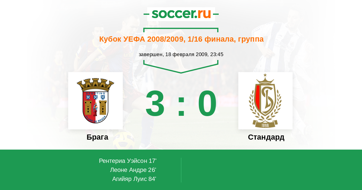 Протокол матча Брага против Стандард