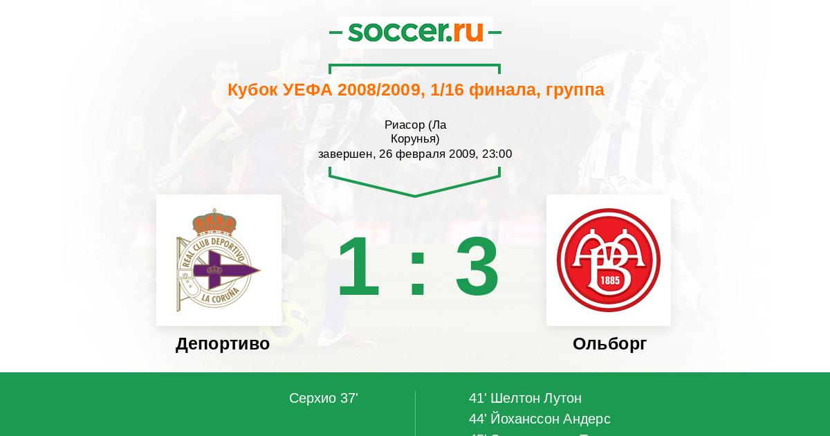Протокол матча Депортиво против Ольборг