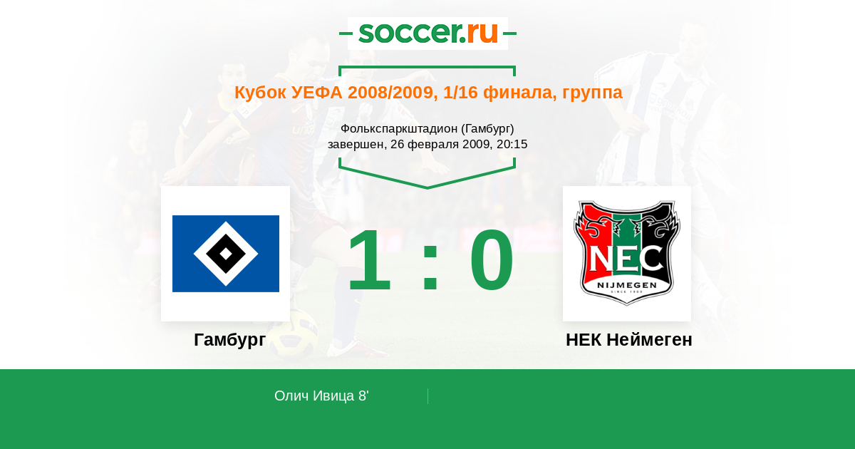 Протокол матча Гамбург против НЕК Неймеген