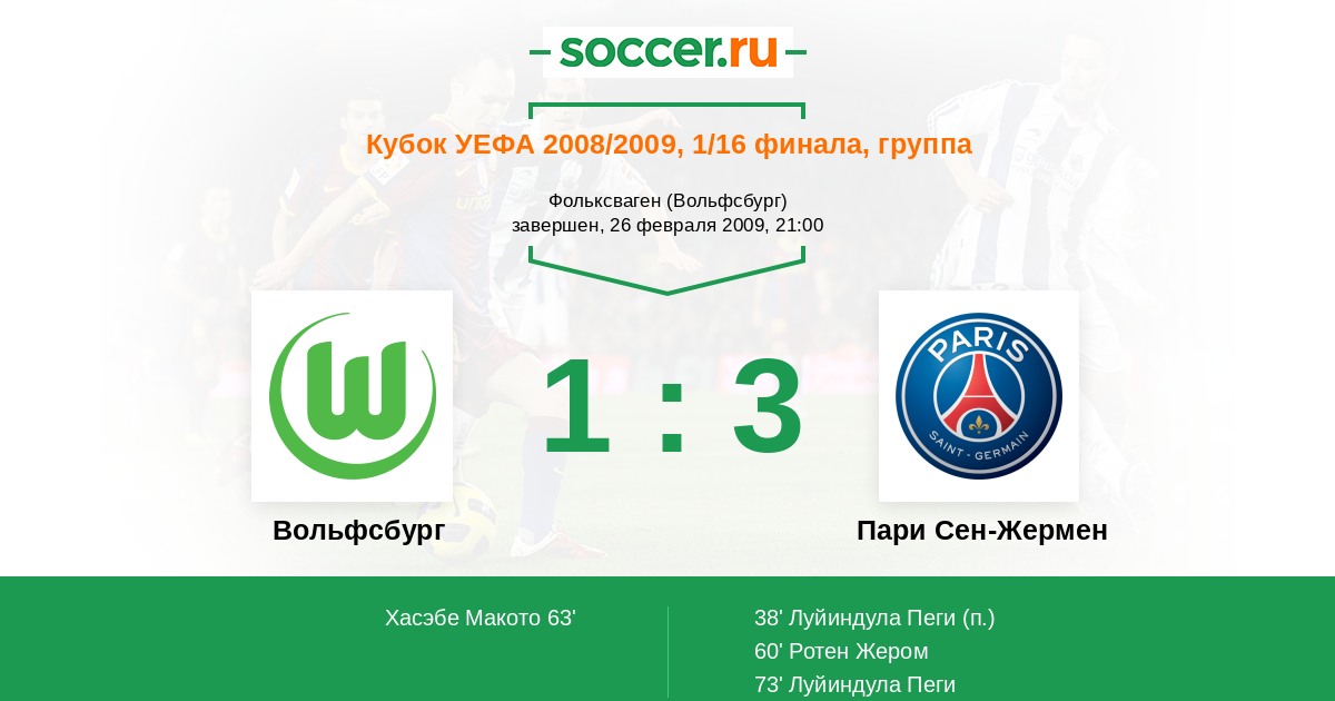 Протокол матча Вольфсбург против Пари Сен-Жермен