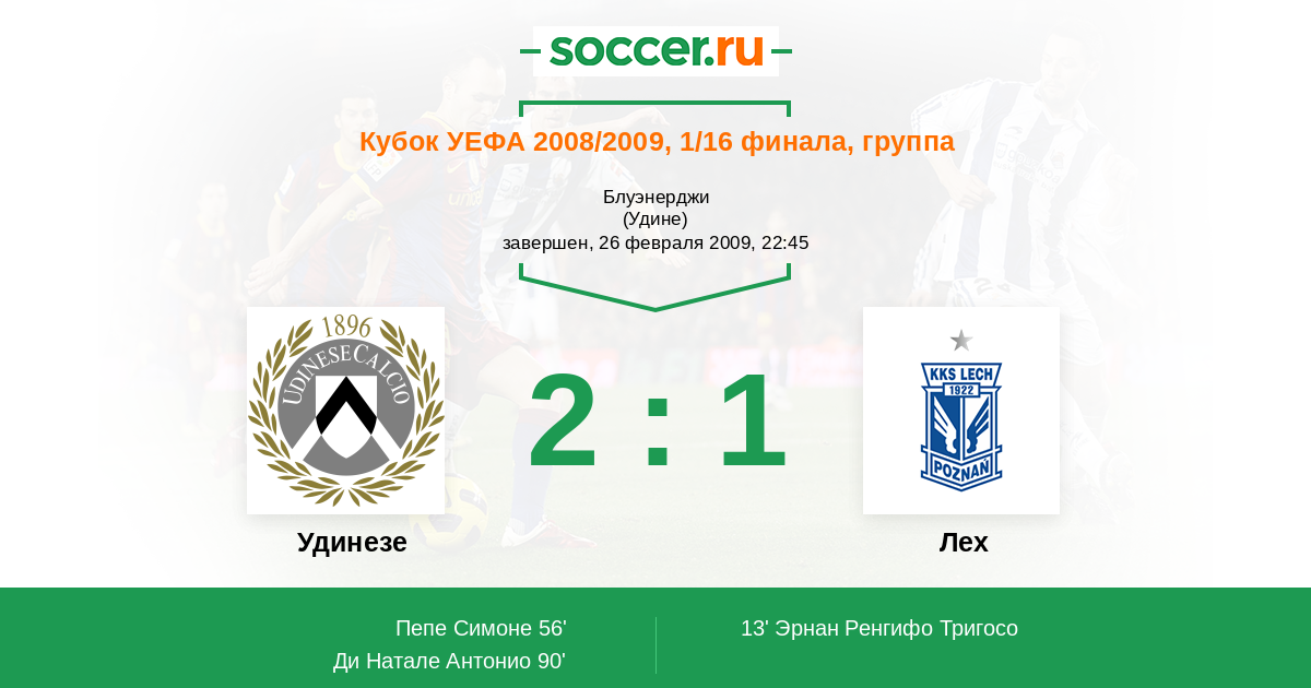 Протокол матча Удинезе против Лех