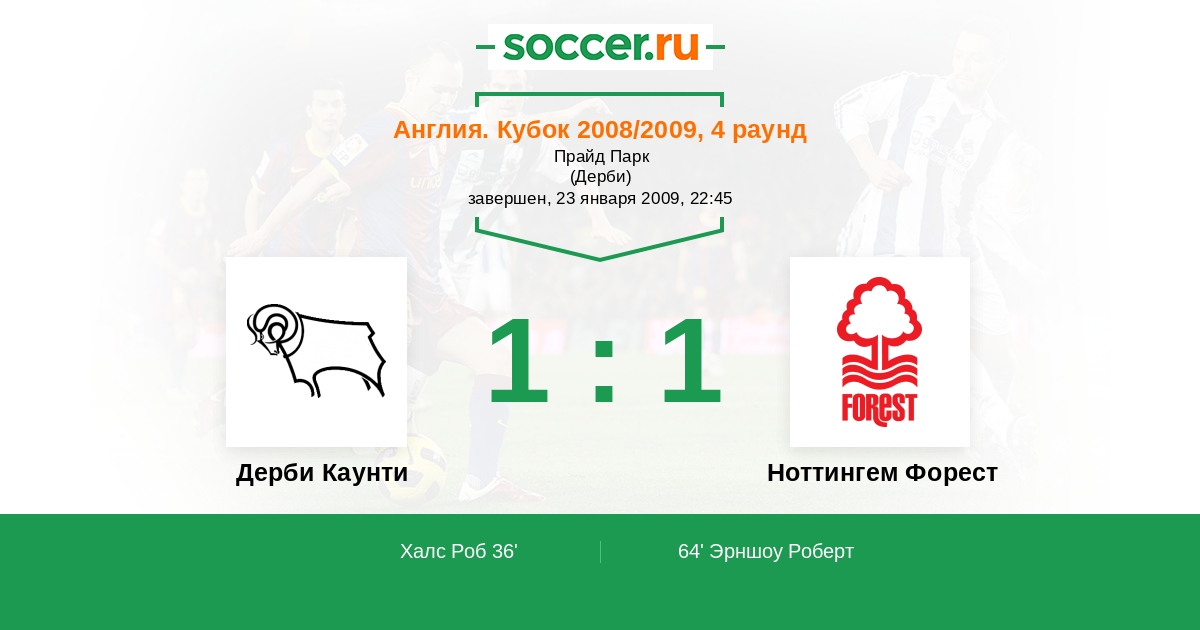 Протокол матча Дерби Каунти против Ноттингем Форест