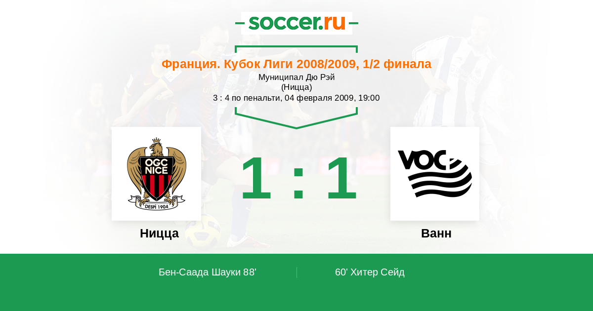 Протокол матча Ницца против Ванн