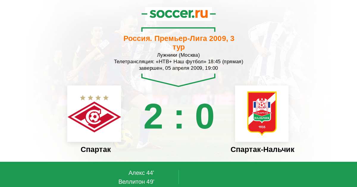 Протокол матча Спартак против Спартак-Нальчик