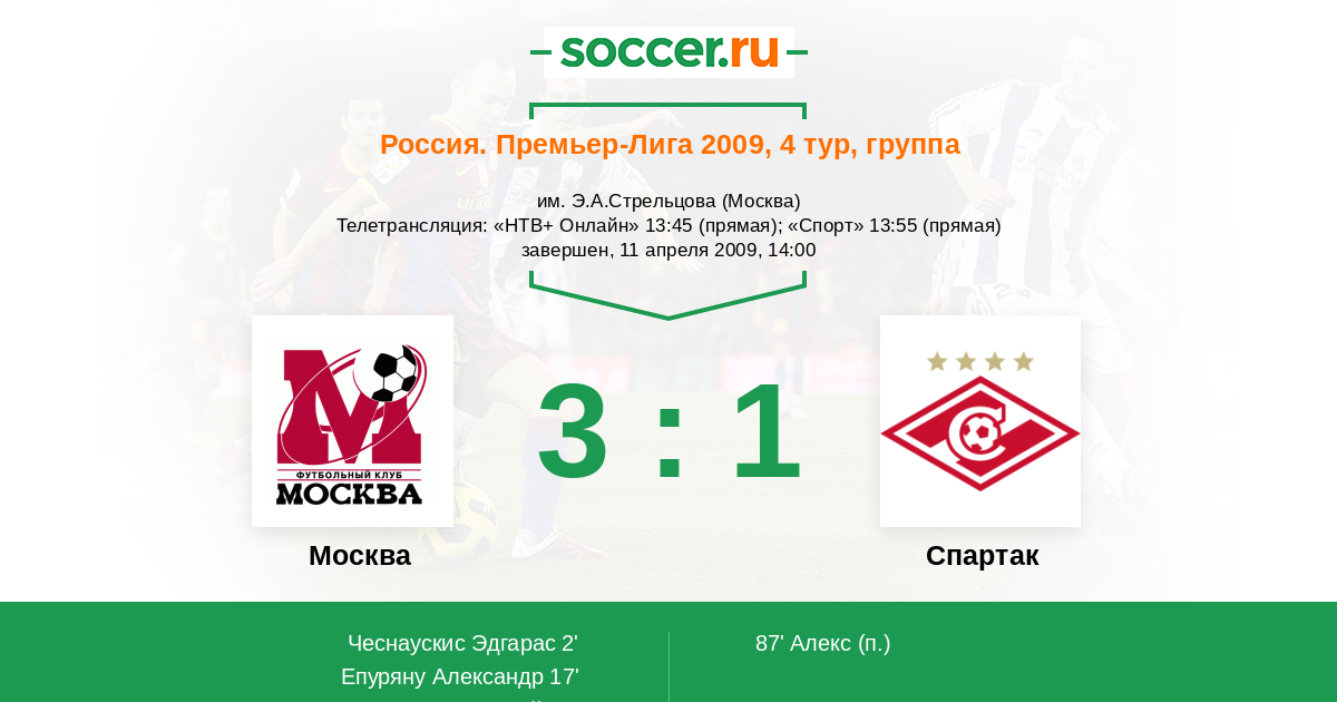 Протокол матча ФК Москва против Спартак