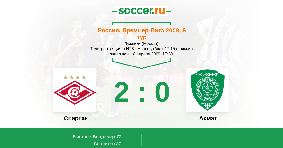 Протокол матча Спартак против Терек