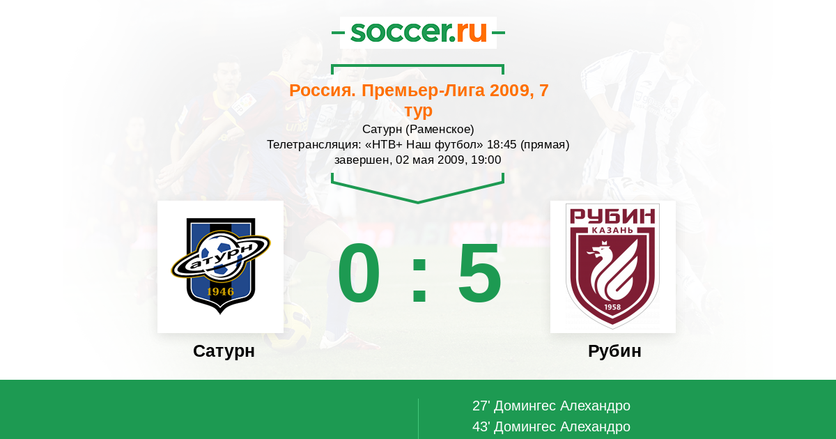 Протокол матча Сатурн против Рубин