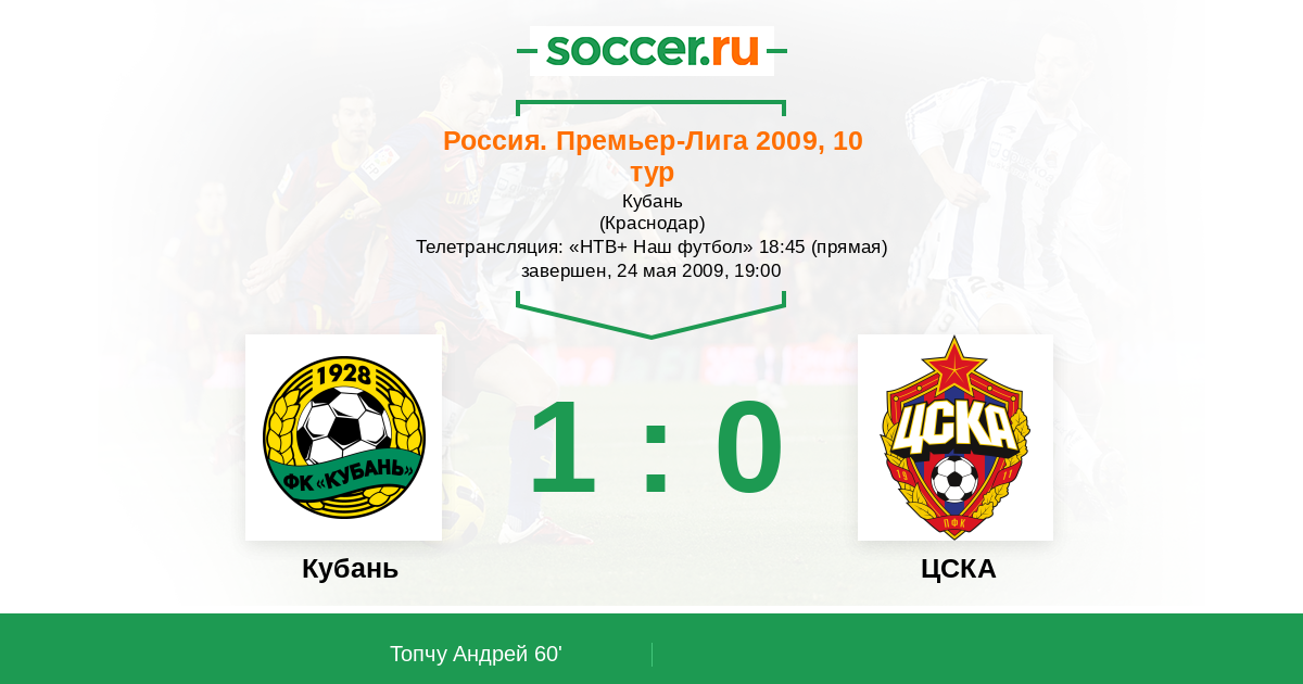 Протокол матча Кубань против ЦСКА