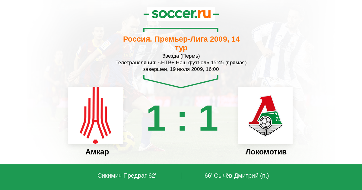 Протокол матча Амкар против Локомотив
