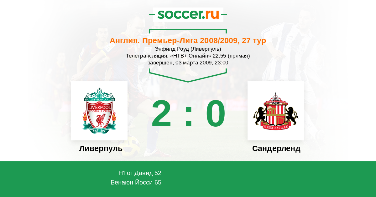 Протокол матча Ливерпуль против Сандерленд