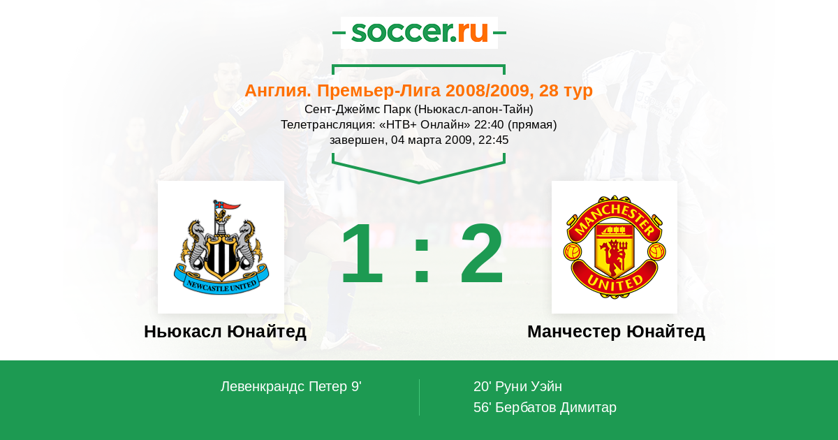 Протокол матча Ньюкасл Юнайтед против Манчестер Юнайтед