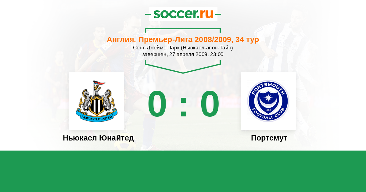 Протокол матча Ньюкасл Юнайтед против Портсмут
