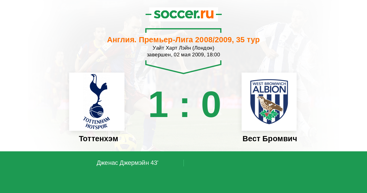 Протокол матча Тоттенхэм против Вест Бромвич