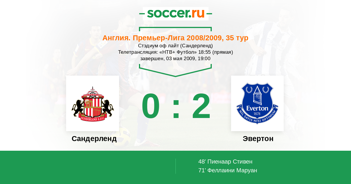 Протокол матча Сандерленд против Эвертон
