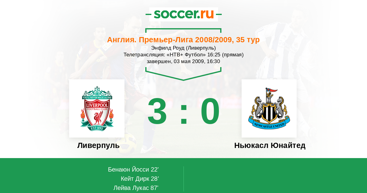 Протокол матча Ливерпуль против Ньюкасл Юнайтед