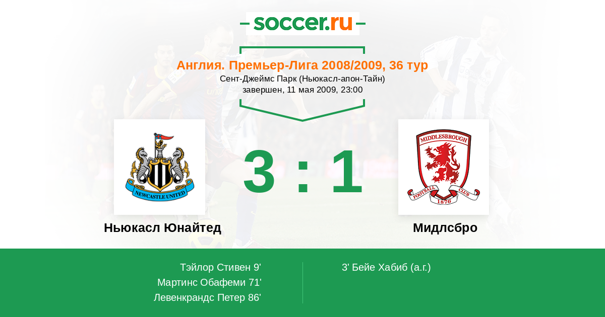 Протокол матча Ньюкасл Юнайтед против Мидлсбро