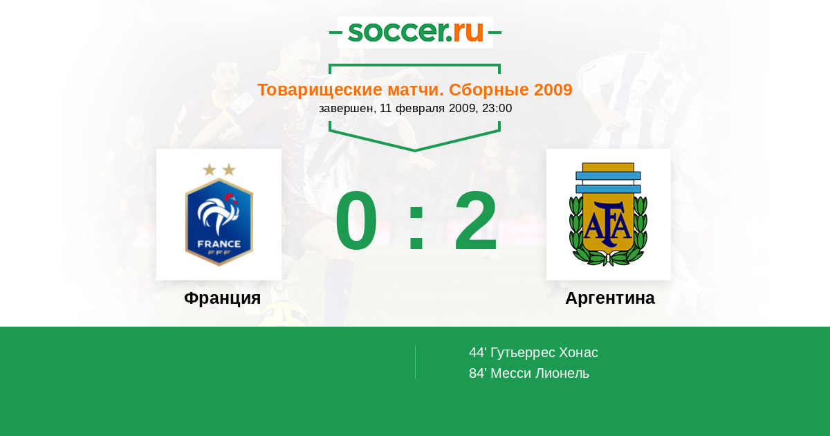 84' (0:2) Месси Лионель (Тевес Карлос)