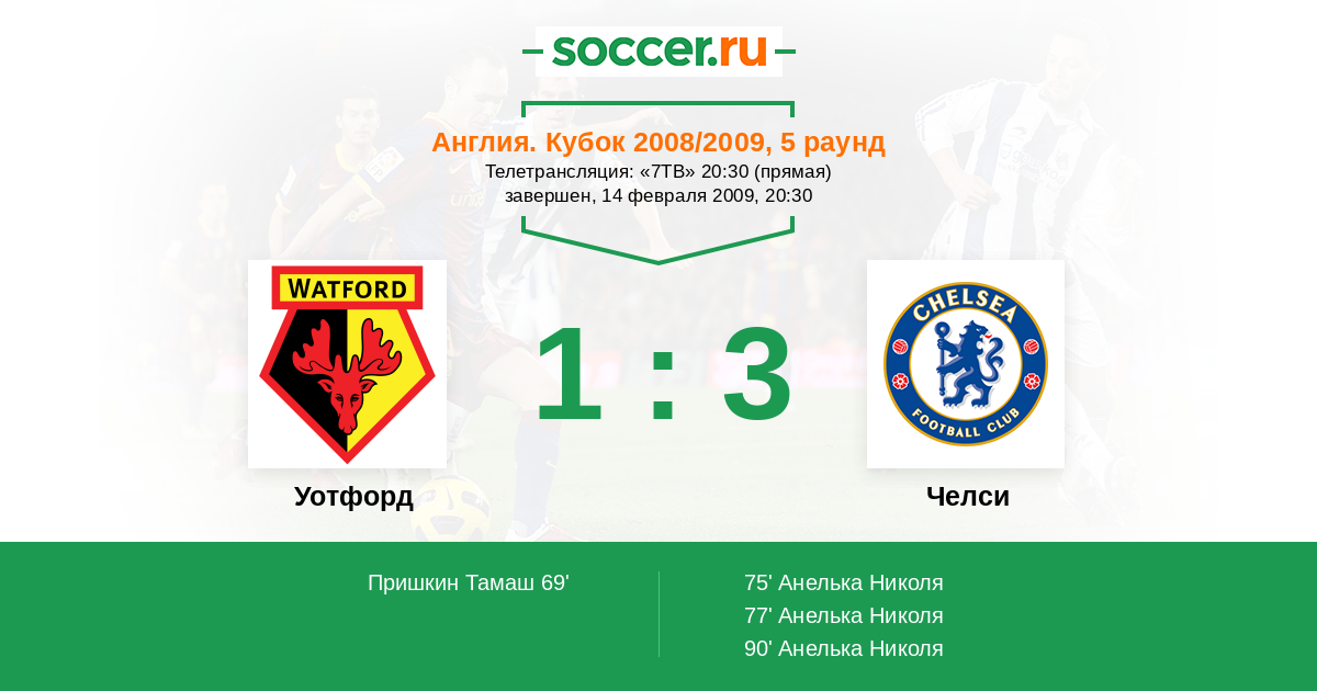 Протокол матча Уотфорд против Челси