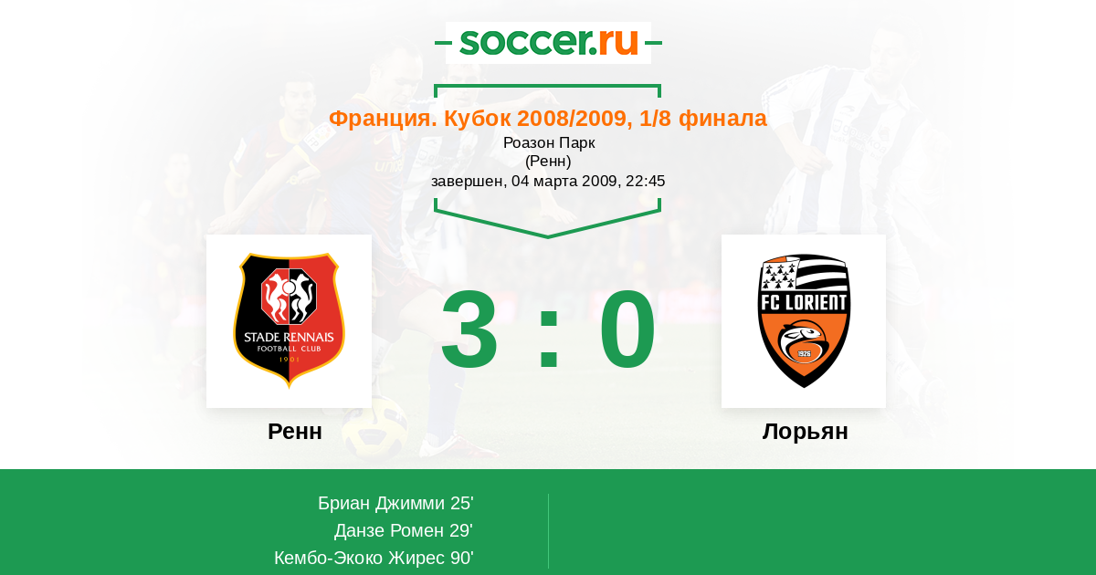 Протокол матча Ренн против Лорьян
