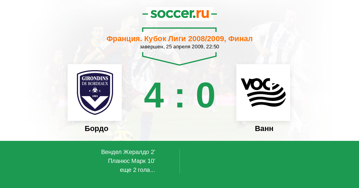 Протокол матча Бордо против Ванн