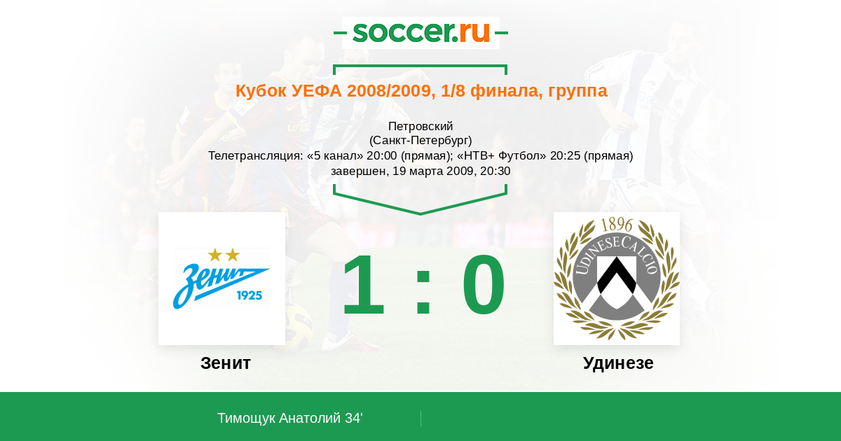 Протокол матча Зенит против Удинезе