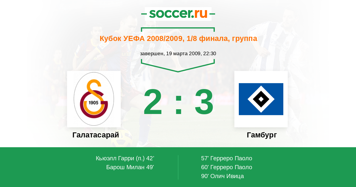 Протокол матча Галатасарай против Гамбург