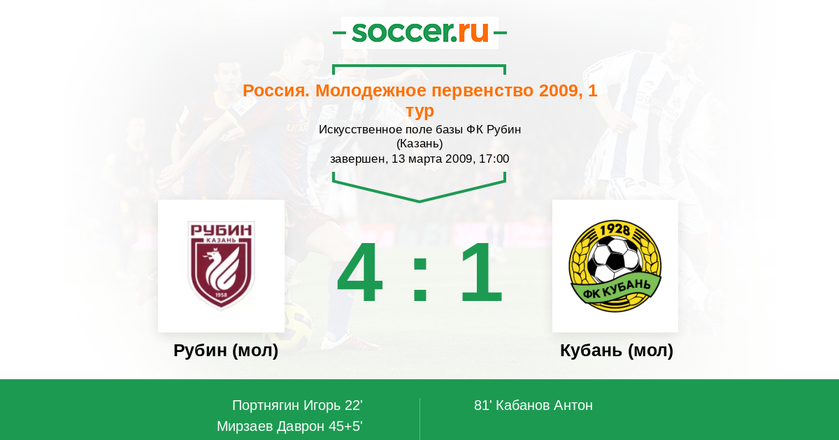 Протокол матча Рубин (мол) против Кубань (мол)