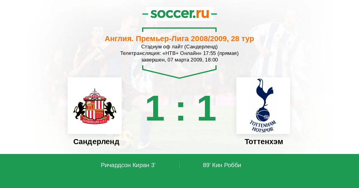 Протокол матча Сандерленд против Тоттенхэм
