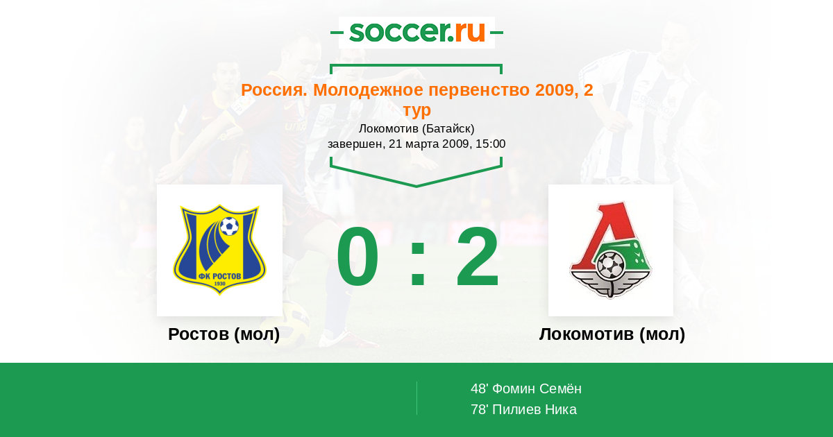 Протокол матча Ростов (мол) против Локомотив (мол)