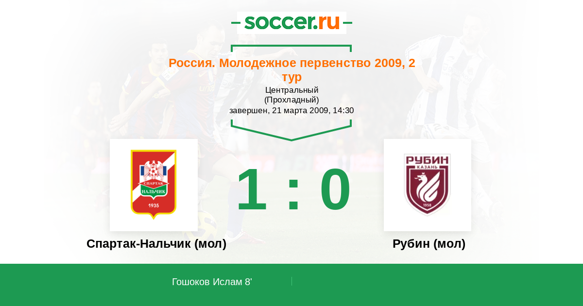 Протокол матча Спартак-Нальчик (мол) против Рубин (мол)