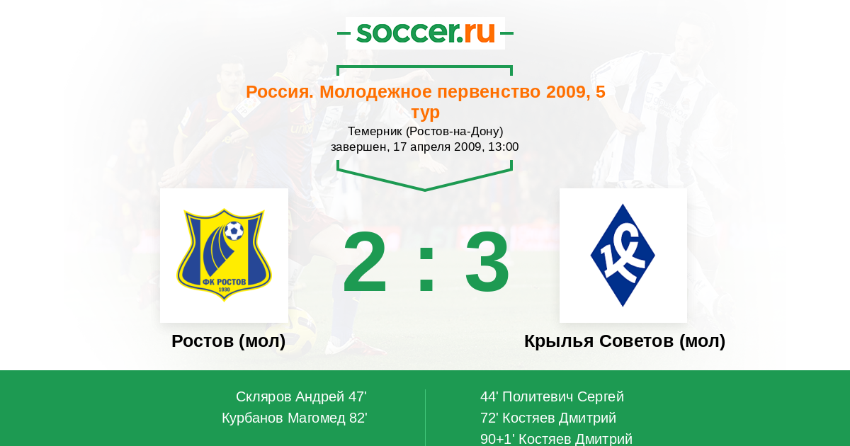 Протокол матча Ростов (мол) против Крылья Советов (мол)