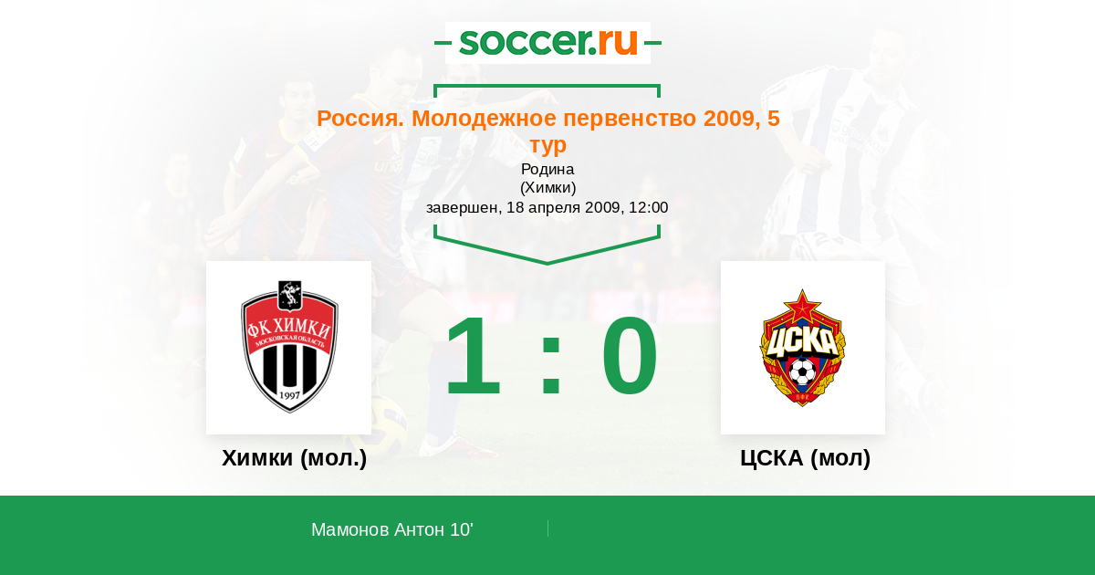 Протокол матча Химки (мол.) против ЦСКА (мол)