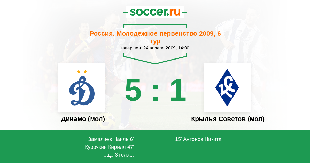 Протокол матча Динамо (мол) против Крылья Советов (мол)