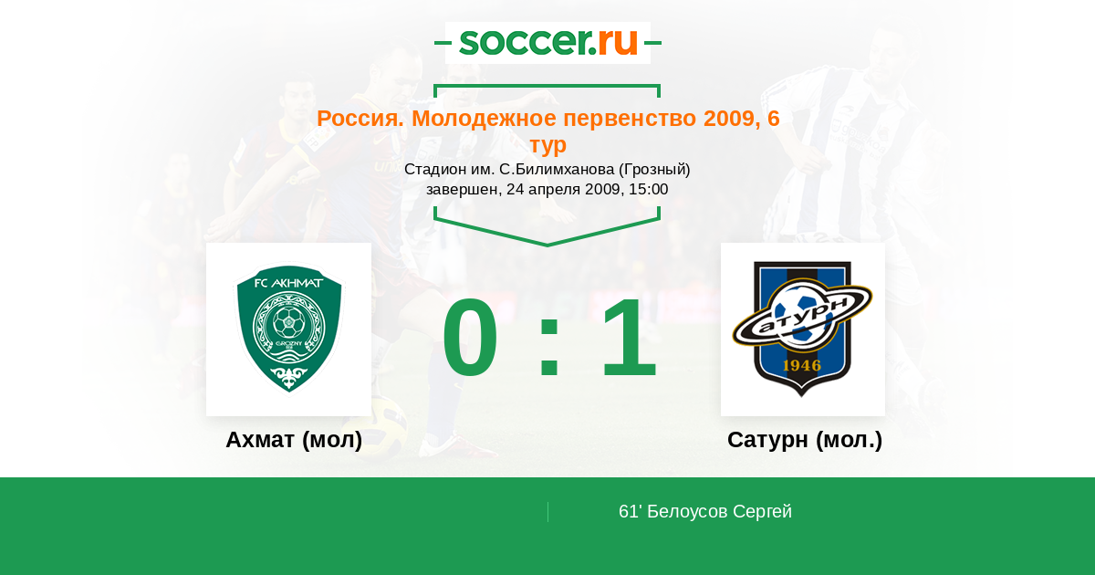 Протокол матча Терек (мол) против Сатурн (мол.)