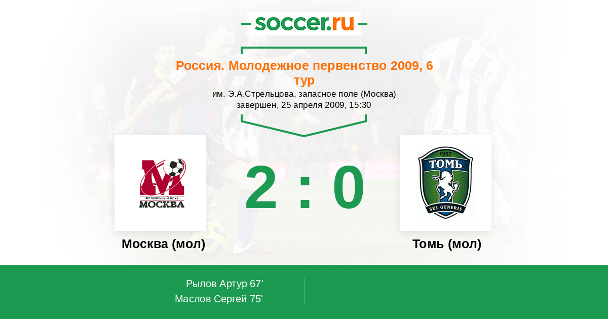 Протокол матча Москва (мол) против Томь (мол)