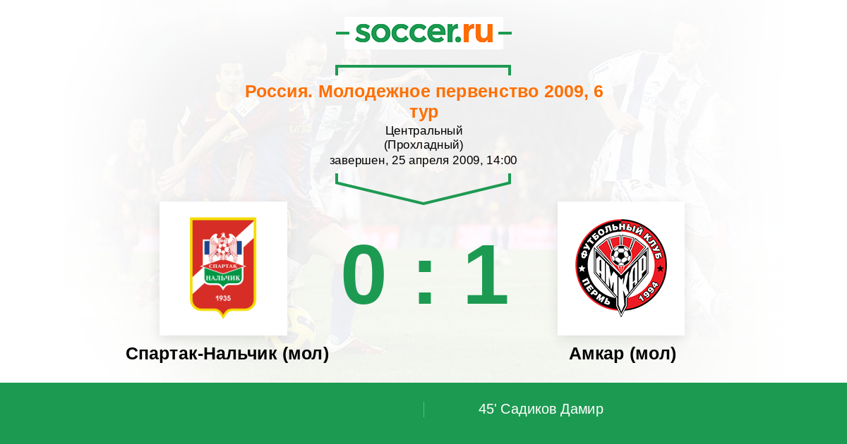 Протокол матча Спартак-Нальчик (мол) против Амкар (мол)