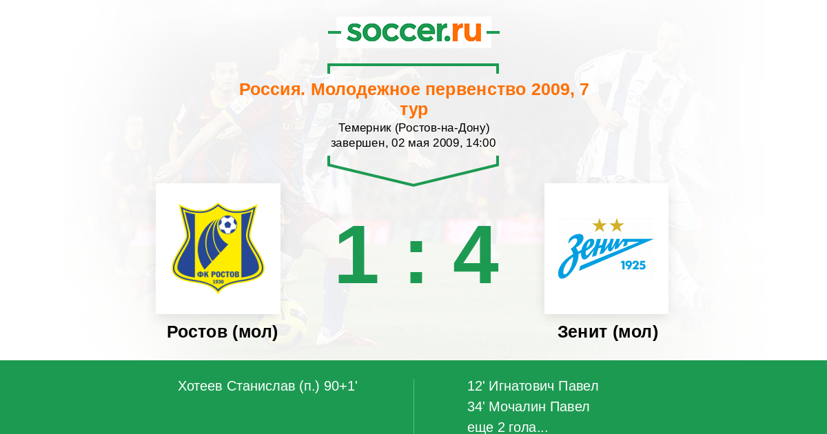 Протокол матча Ростов (мол) против Зенит (мол)