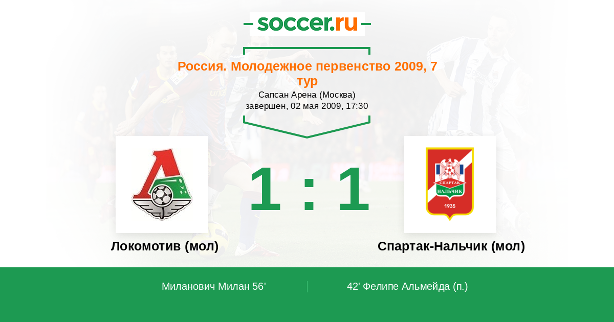 Протокол матча Локомотив (мол) против Спартак-Нальчик (мол)