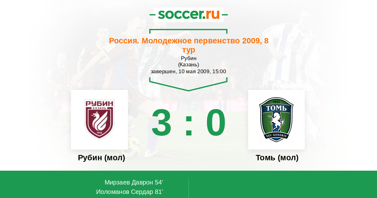 Протокол матча Рубин (мол) против Томь (мол)