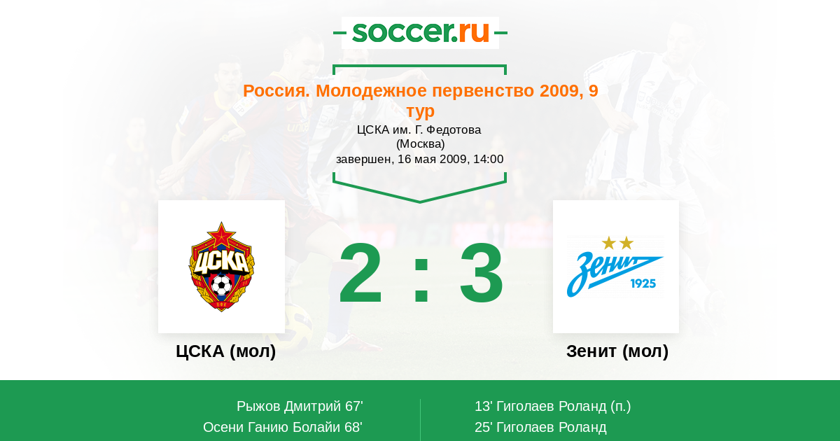 Протокол матча ЦСКА (мол) против Зенит (мол)