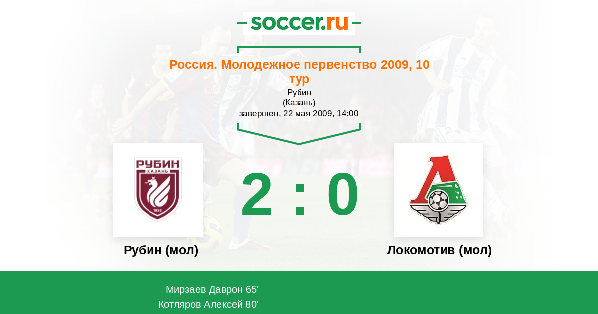 Протокол матча Рубин (мол) против Локомотив (мол)