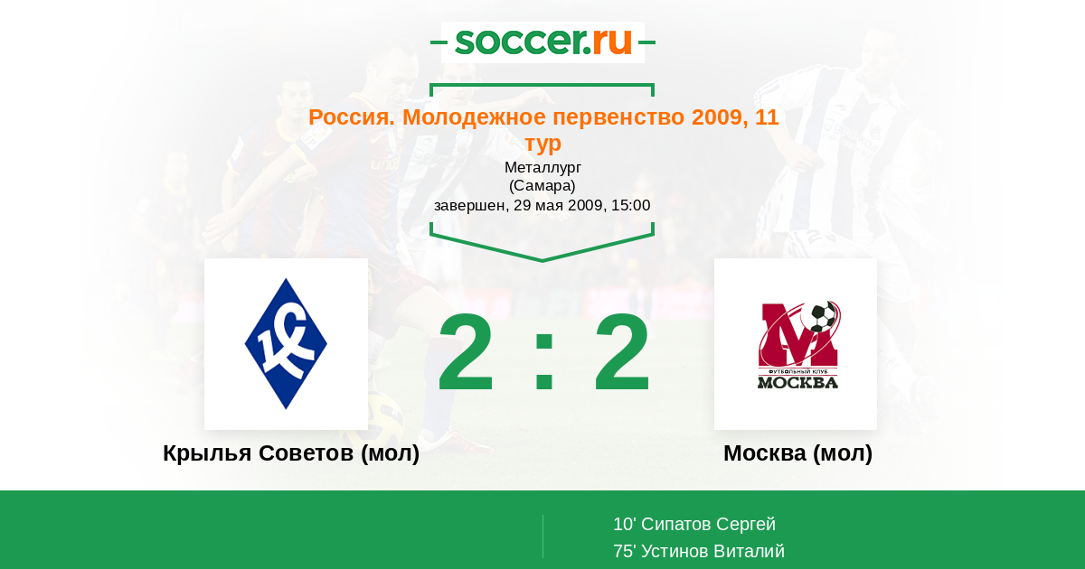 Протокол матча Крылья Советов (мол) против Москва (мол)